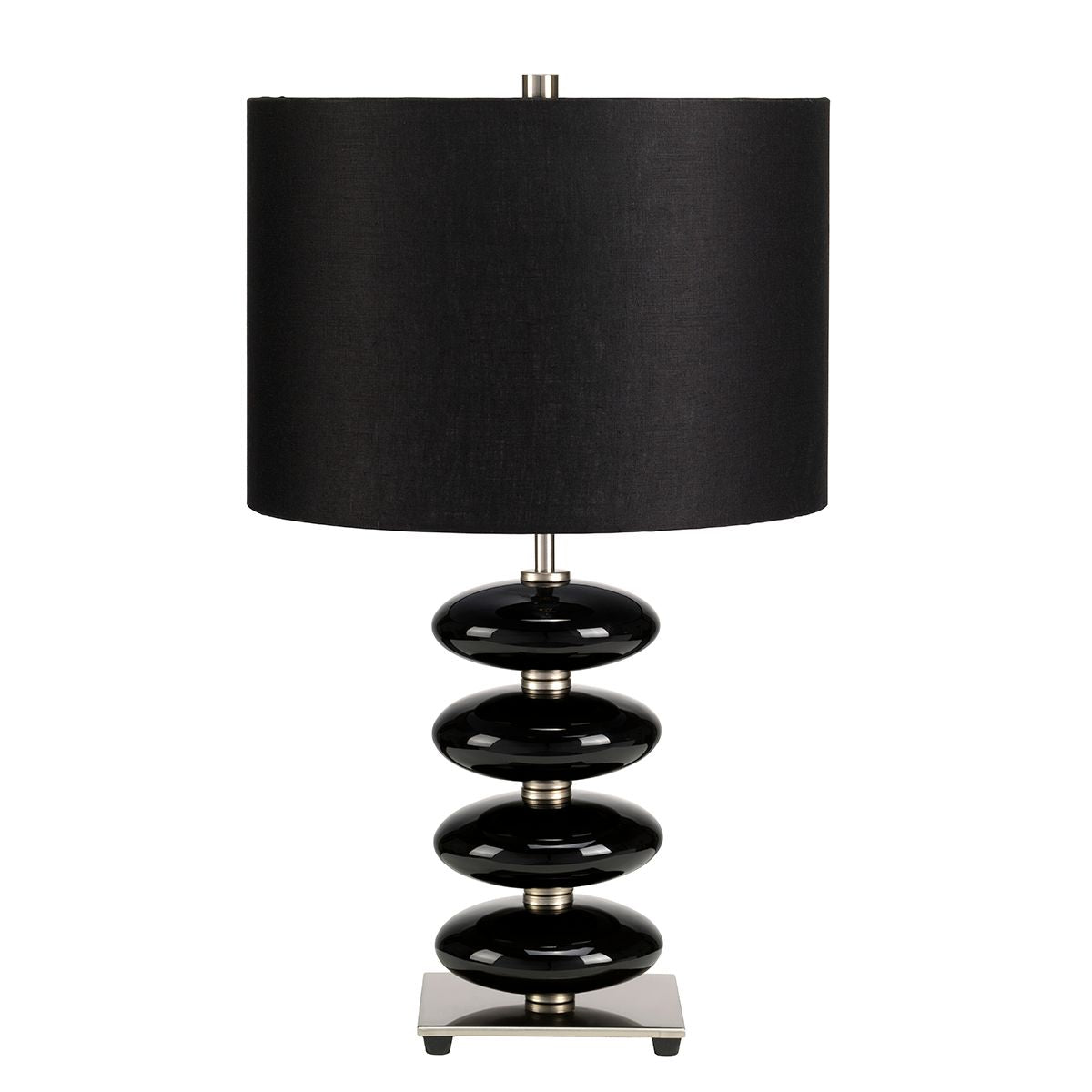 Nowoczesna lampa stołowa, noga wykonana z czarnej ceramiki w postaci czterech korali umieszczonych na niklowanej konstrukcji z czarnym, walcowatym abażurem, tworzą unikalna całość, zaskakującą, bardzo nowoczesną.