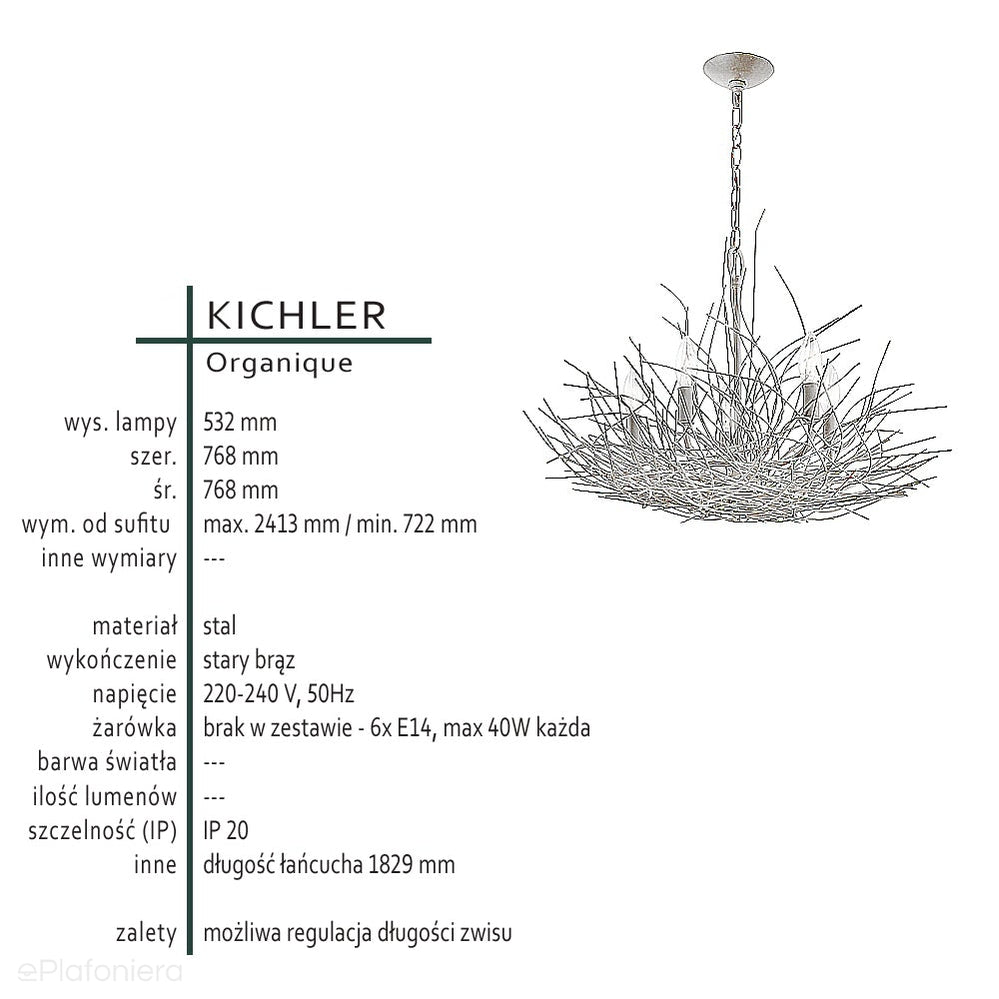 Druciana lampa wisząca - stary brąz (76cm) do salonu sypialni łazienki (6xE14) Kichler (Organique)