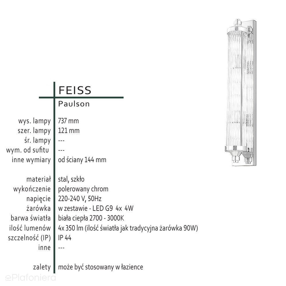 Lampa do łazienki wys.74cm ścienna szklana - kinkiet chrom (G9 4x4W) Feiss (Paulson)