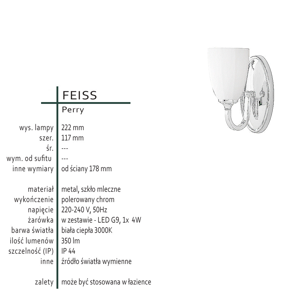 Klasyczna lampa ścienna, kinkiet do łazienki kuchni, 1x LED G9 Feiss (Perry)