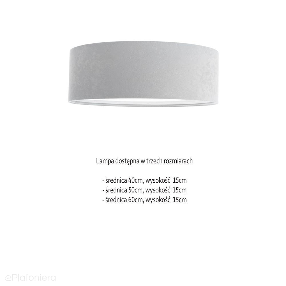 Lampa sufitowa - plafoniera wykonana z tkaniny welurowej oraz sztucznego tworzywa, od dołu zamaskowany jest mleczną blendą z PCV. Blendę można łatwo zdjąć i umyć pod bieżącą wodą przy użyciu detergentów.