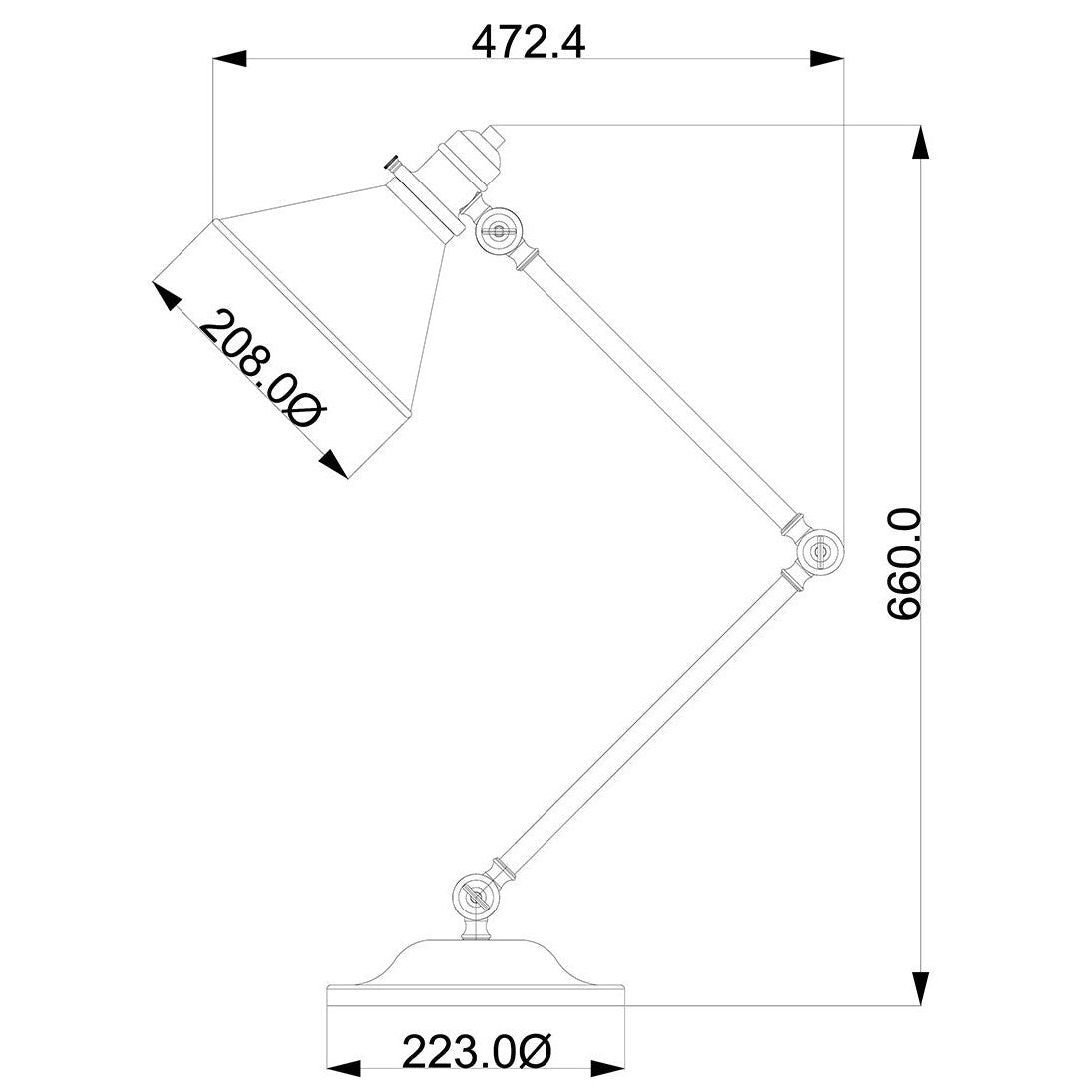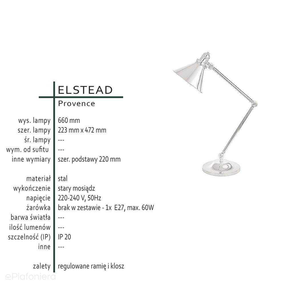 - inne: regulowane ramię i klosz