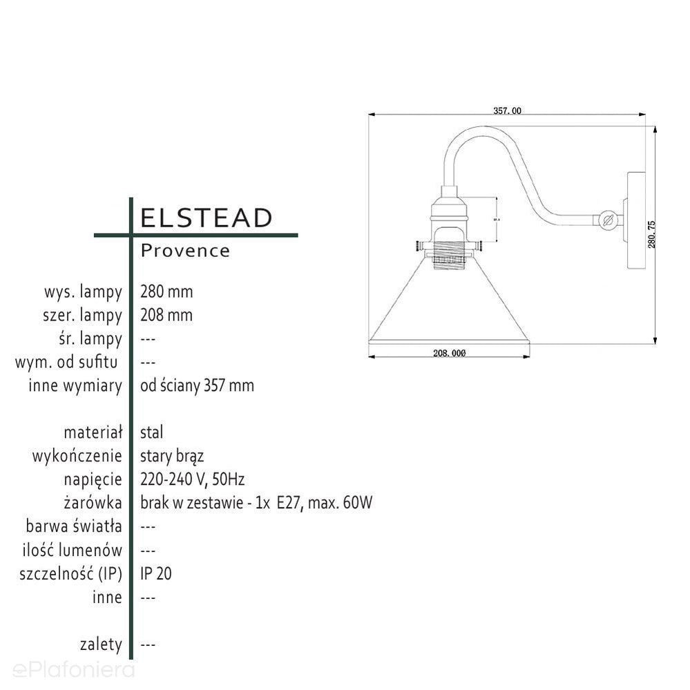 Lampa ścienna ze starym brązem Provence - Elstead (1xE27)
