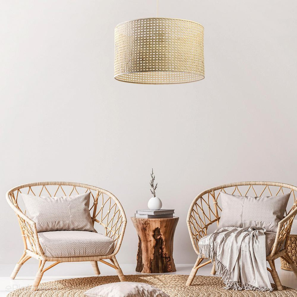 Rattanowa lampa wisząca w romantycznym stylu boho, walec wykonany z włókien palmy rotangowej, bez tworzyw sztucznych.