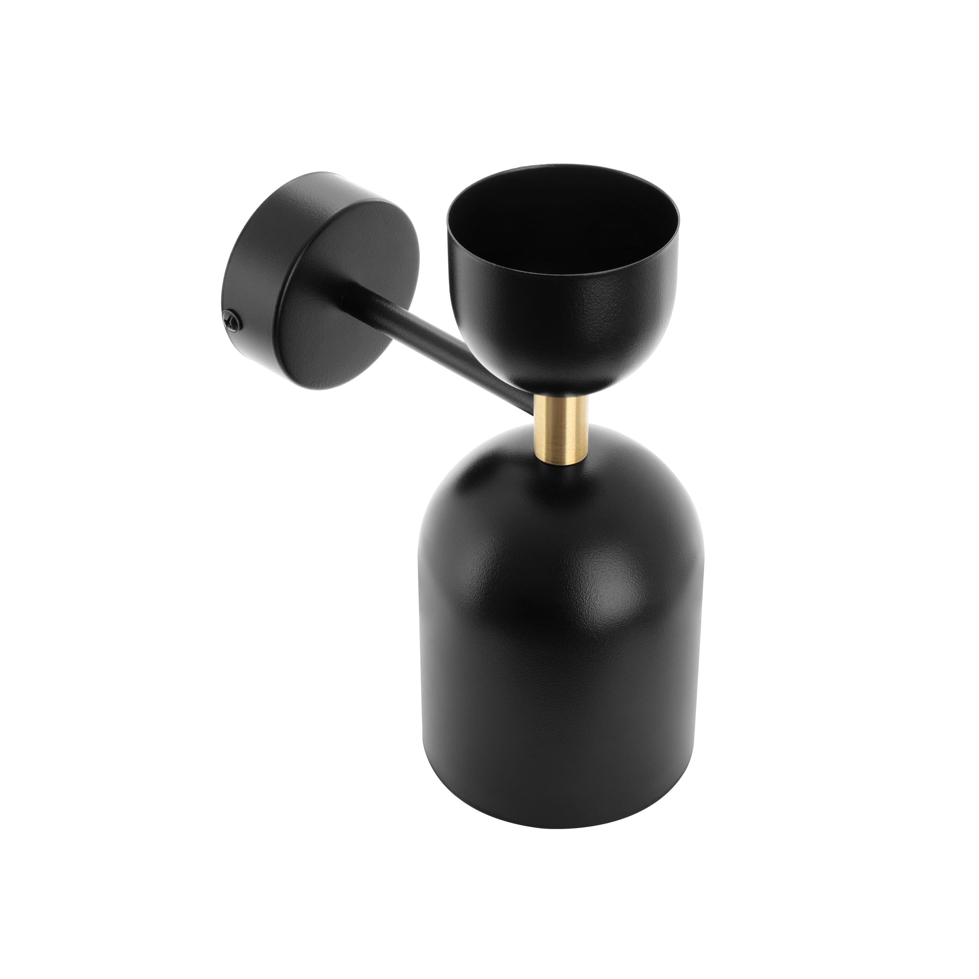 Nowoczesny, pojedynczy kinkiet, uniwersalne połączenie czarnego klosza i maskownicy, z miedzianym łącznikiem.