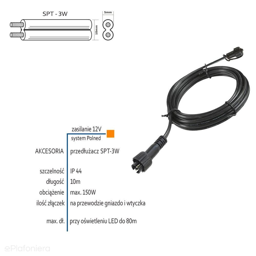 Przedłużacz 10m SPT-3W (IP 44) - AKCESORIA systemu 12V LED Polned (6056011)