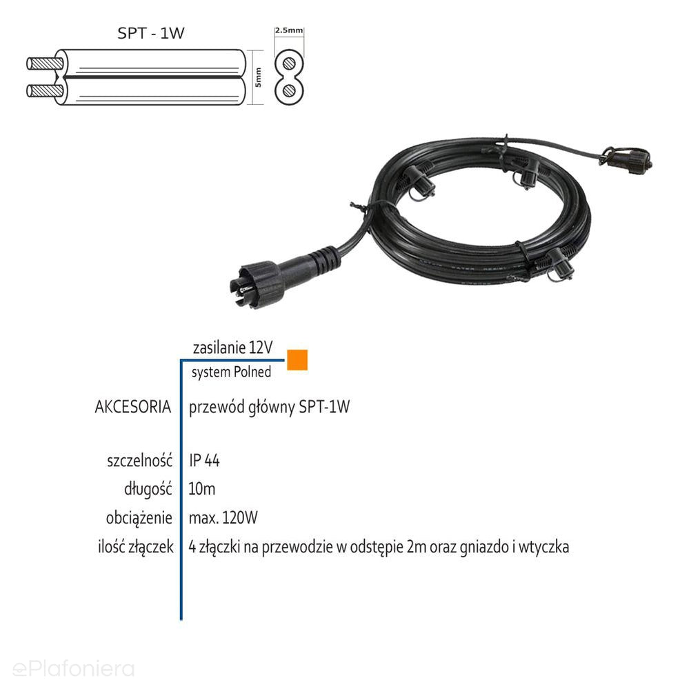 Przewód główny 10m SPT-1W z 4 złączkami (IP 44) - AKCESORIA systemu 12V LED Polned (6007011)