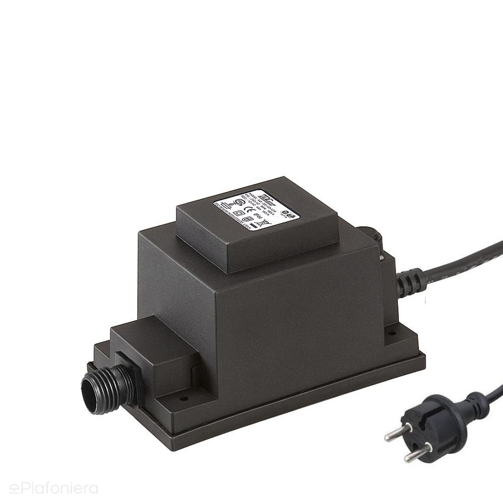 Transformator w obudowie wodoszczelnej IP 67. Do stosowania wewnątrz i na zewnątrz. Przewód 2m z wtyczką umożliwia podłączenie do gniazdka 230V.