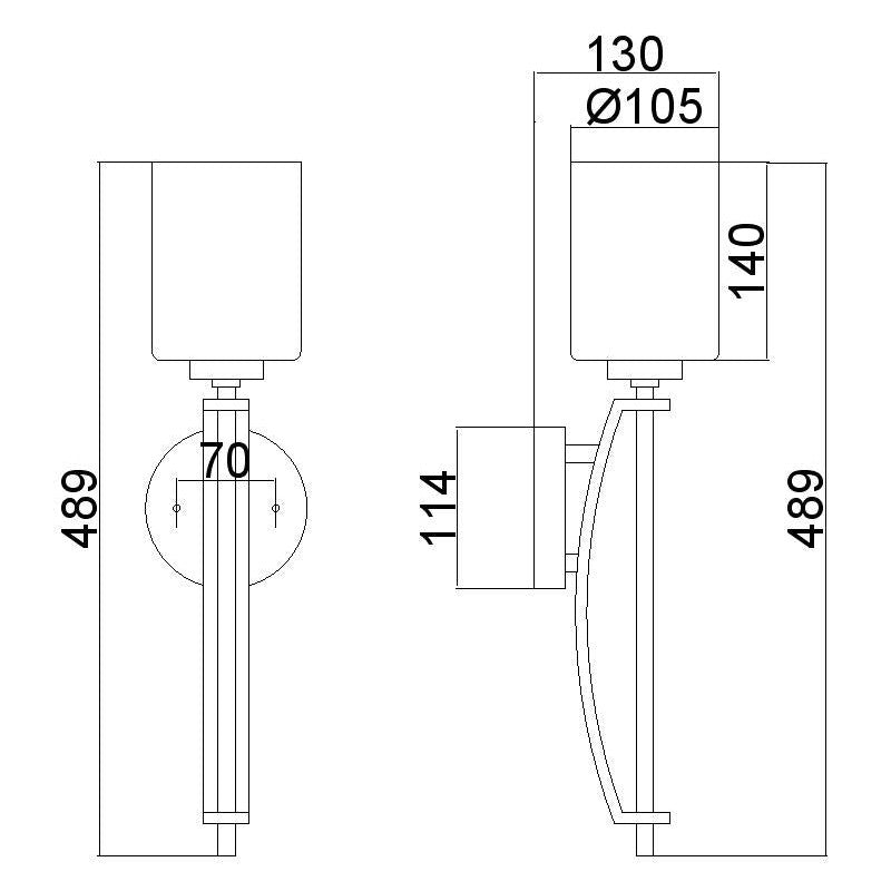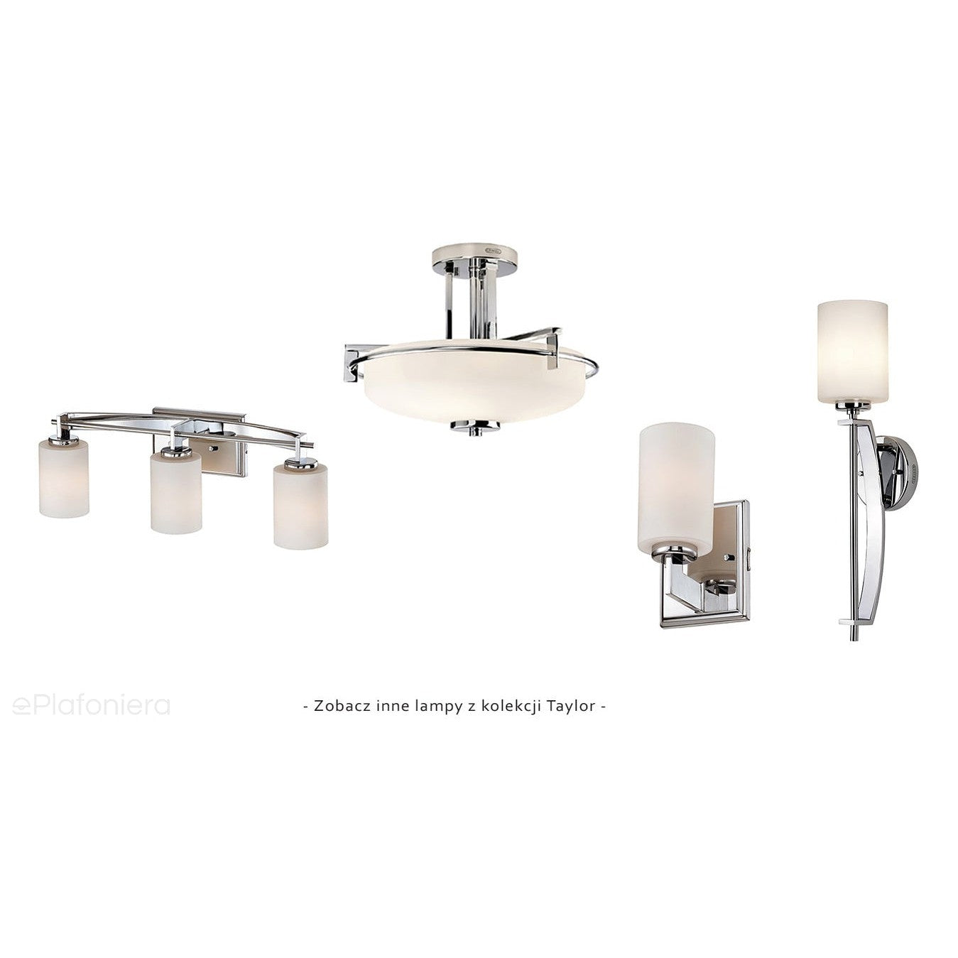 Nowoczesny kinkiet pojedynczy, prosta chromowa konstrukcja z białym, szklanym kloszem – tubą, skierowanym w górę, o podwyższonym stopniu szczelności IP 44.