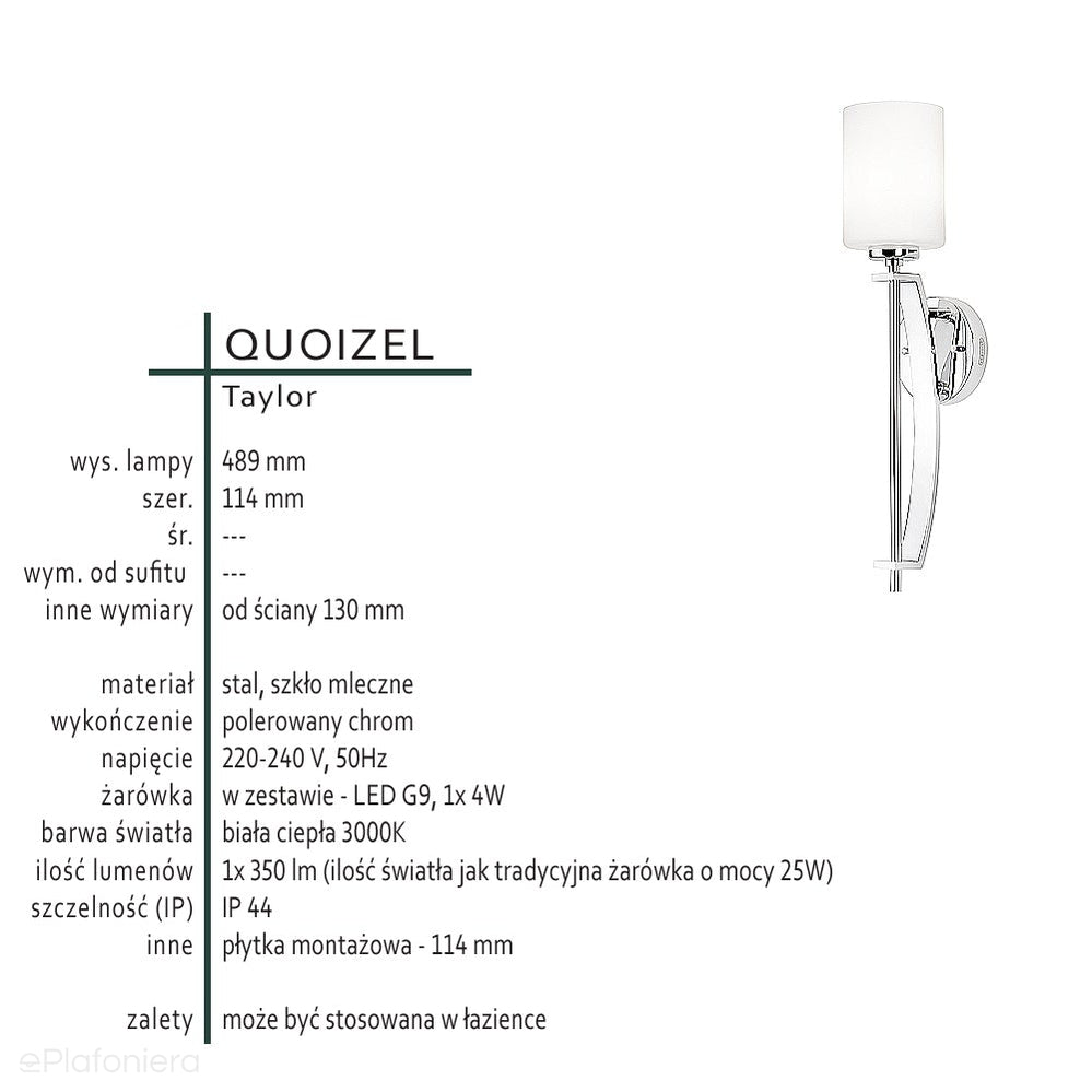 Łazienkowa lampa ścienna Taylor z polerowanym chromem - kinkiet - Quoizel, 15x49cm / G9 1x4W
