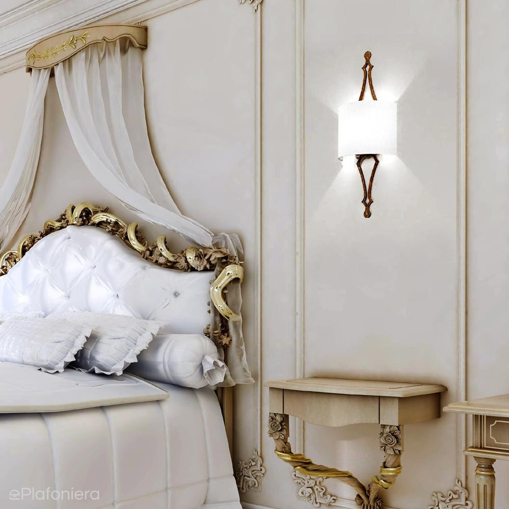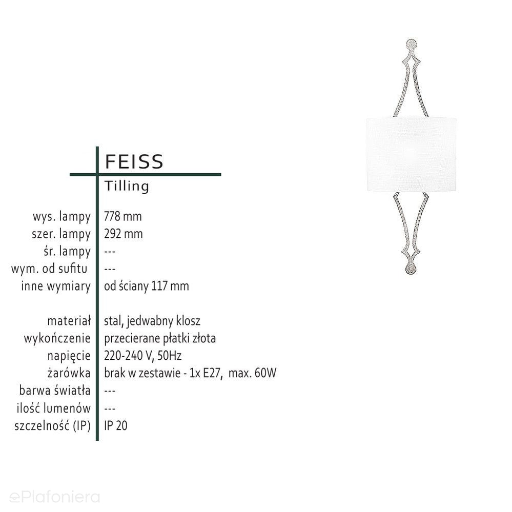 Metalowy kinkiet - przecierane płatki złota, jedwabny klosz (1xE27) Feiss (Tilling)