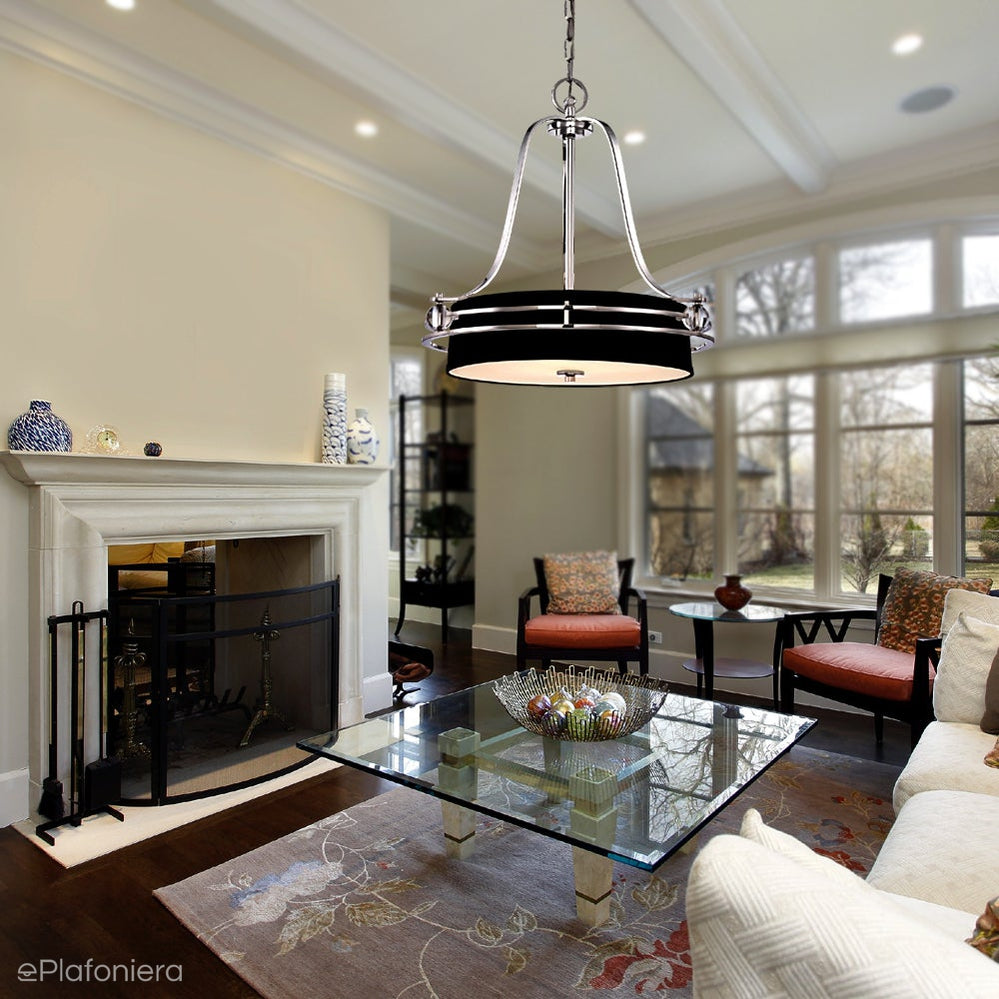 Lampa wisząca srebrna - czarny abażur (58cm) żyrandol do salonu sypialni jadalni (4xE27) Quoizel (Gotham)