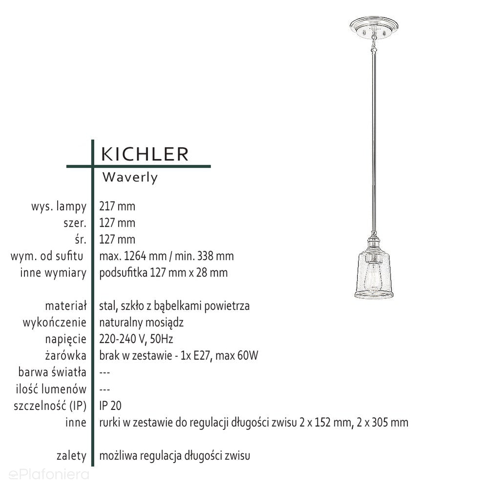 Mosiężna lampa wisząca pojedyncza Waverly - Kichler / 13cm / 1xE27