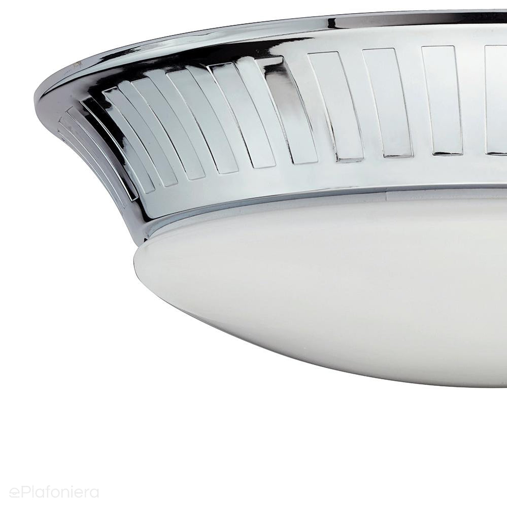 Nowoczesna, elegancka plafoniera z żarówką LED, ozdobna oprawa w kolorze polerowanego chromu z mlecznym, szklanym kloszem, wykonana z dbałością o detale, o wysokiej klasie szczelności IP44, sprawdzi się zatem w łazience, kuchni, ale też w salonie, sypialni, przedpokoju.