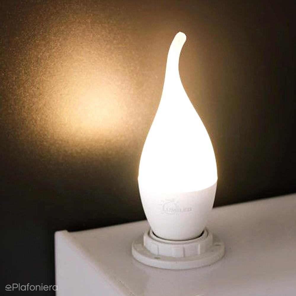 Głównym atutem żarówek LED jest mniejsze o nawet do 90% zużycie energii elektrycznej względem standardowych źródeł światła. Zamknięta w formie pięknie prezentującej się świeczki w kształcie płomyka, lampa LED wyposażona w mleczny klosz emituje ciepłe, przyjemne dla oka światło o temperaturze barwowej 3000K, która idealnie sprawdzi się do ogólnego oświetlenia Twoich pomieszczeń. Żarówka może być montowana we wszystkich tradycyjnych oprawach, które wyposażone są w mały gwint E14. Wymiana źródła światła jest prosta i nie sprawia żadnych problemów. Wystarczy, że zastąpisz starą żarówkę nową i gotowe.