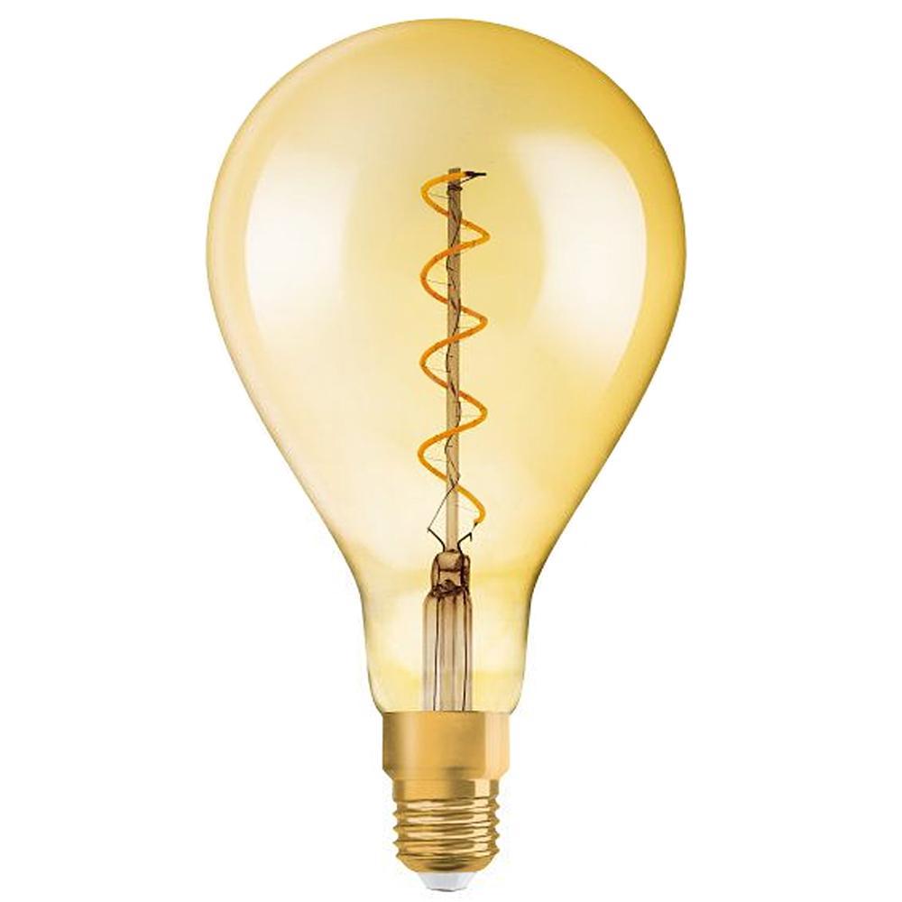 Żarówka dekoracyjna LED marki OSRAM z serii VINTAGE 1906 to źródło światła osadzone w szklanej przezroczystej bańce w kolorze złotym które cechuje się przede wszystkim energooszczędnością uzyskaną poprzez wykorzystanie innowacyjnej technologii włókien LED. OSRAM Vintage 1906 z trzonkiem E27 o mocy 5W (odpowiednik klasycznej żarówki o mocy 28W) emituje ciepłą barwę światła 2000K, zaś strumień świetlny wynosi 300lm. Dzięki swojemu wyglądowi i stylowi ozdobna żarówka VINTAGE idealnie wkomponuje się w każdy wystrój wnętrz oświetlając je przyjemnym dla oka światłem.