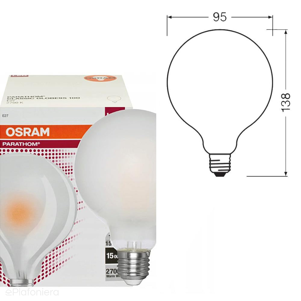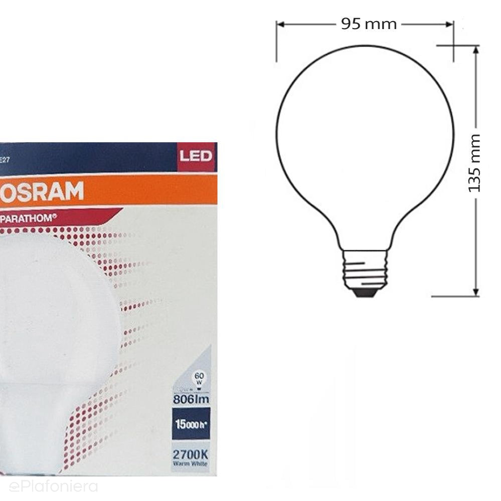 ŻARÓWKA LED Globe mleczna z serii PARATHOM RETROFIT CLASSIC GLOBE uznanej na rynku marki OSRAM to nowoczesne źródło światła z gwintem E27 o mocy 11W (odpowiednik żarówek o mocy 100W) i strumieniu świetlnym 1521lm, także w wersji 6,5W (odpowiednik żarówek o mocy 60W) i strumieniu świetlnym 806lm. Zamknięta w dużej bańce G95 żarówka emituje światło o ciepłej barwie 2700K. Firma OSRAM wykorzystując innowacyjną technologię włókien LED w swoich żarówkach gwarantuje nam wydajność i rzeczywiste oddawanie barw na bardzo wysokim poziomie.