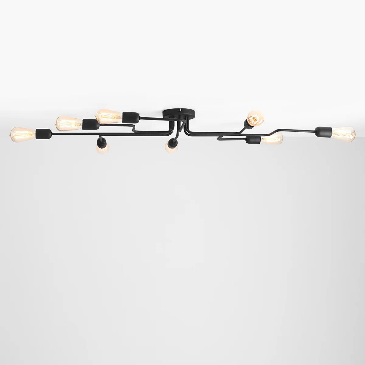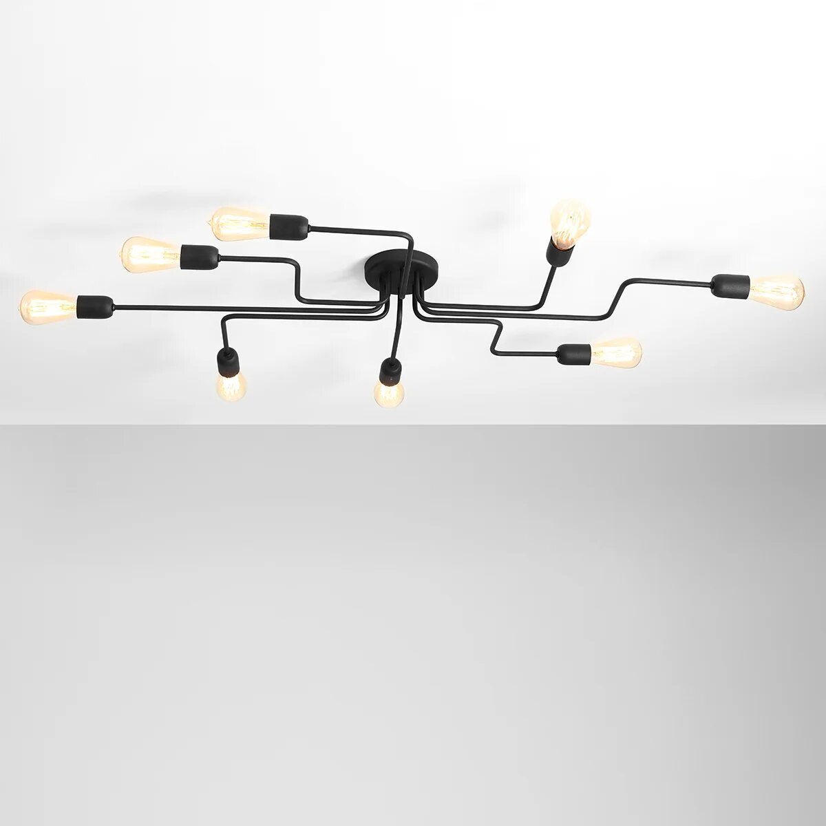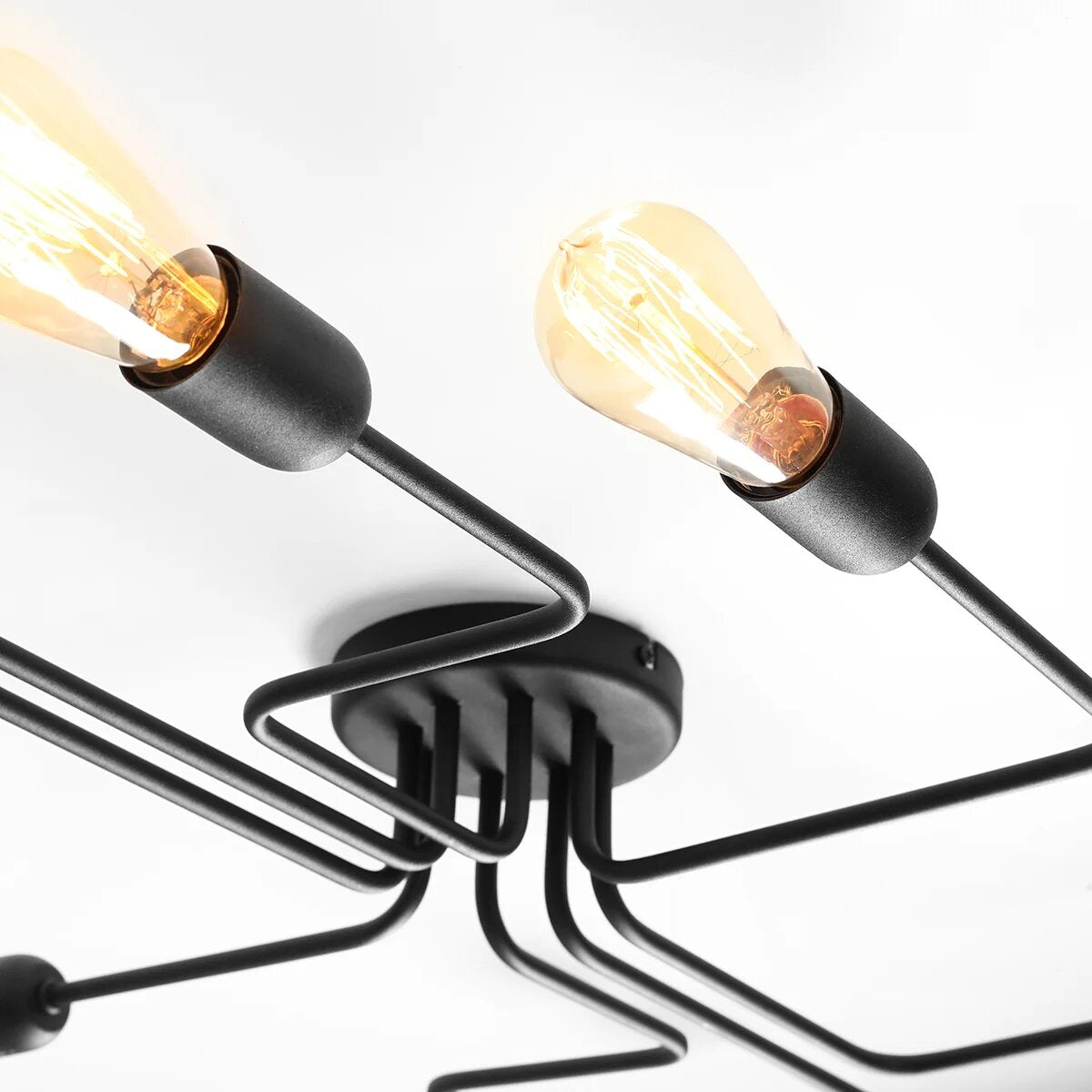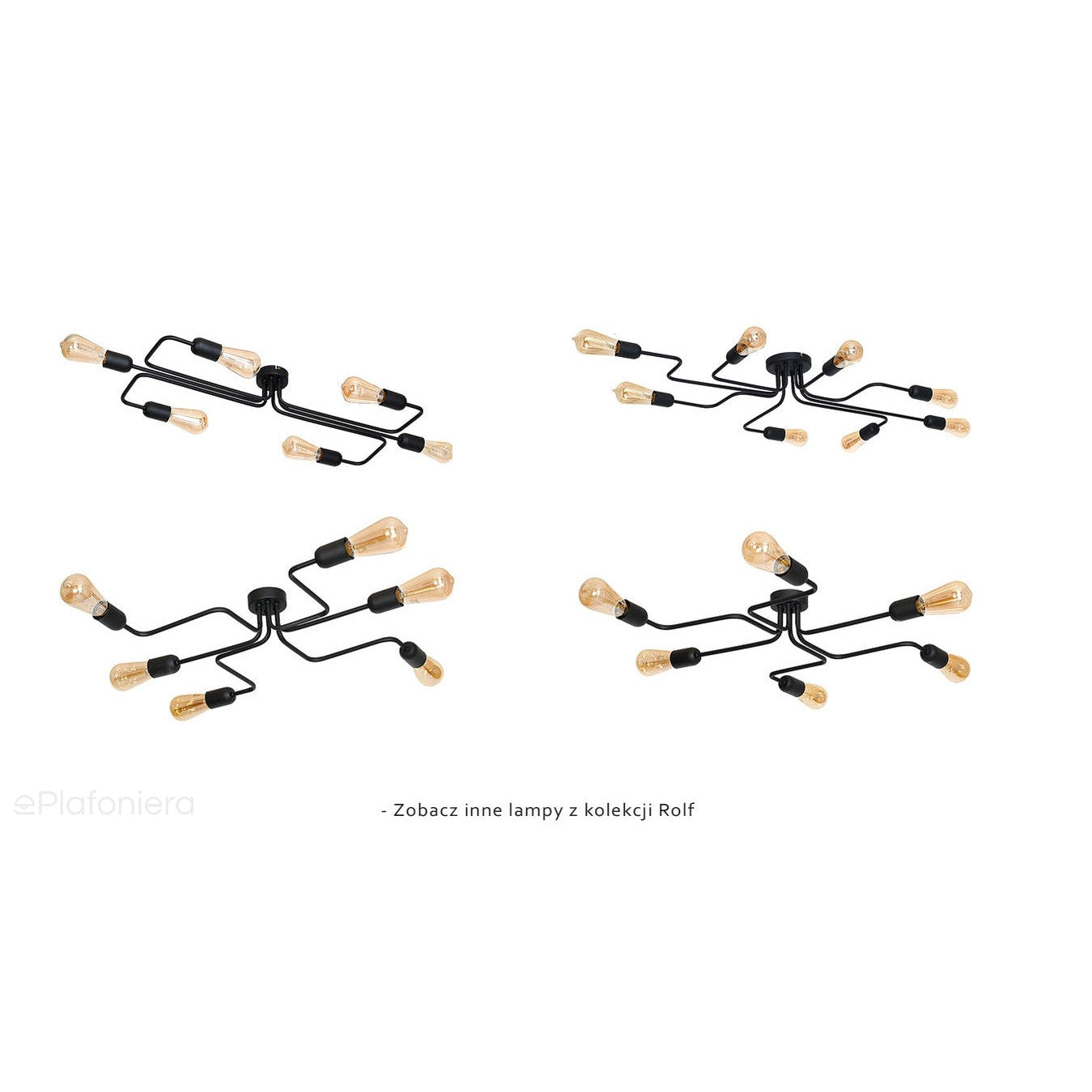 Ośmioramienna plafoniera serii Rolf to malowana na czarno, rozłożysta i bardzo atrakcyjna lampa. To minimalistyczne plafony sufitowe o prostej formie i geometrycznych gięciach ramion.